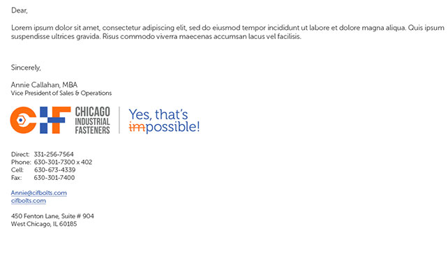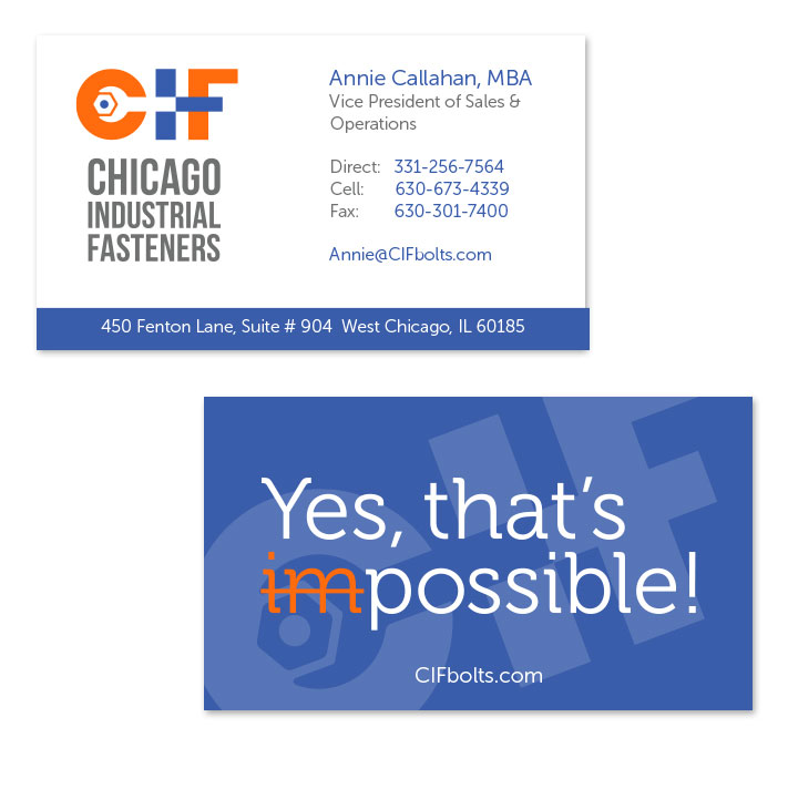 The Chicago Industrial Fasteners‘ icon mark can be used separately from the logo on certain occasions as a design element.