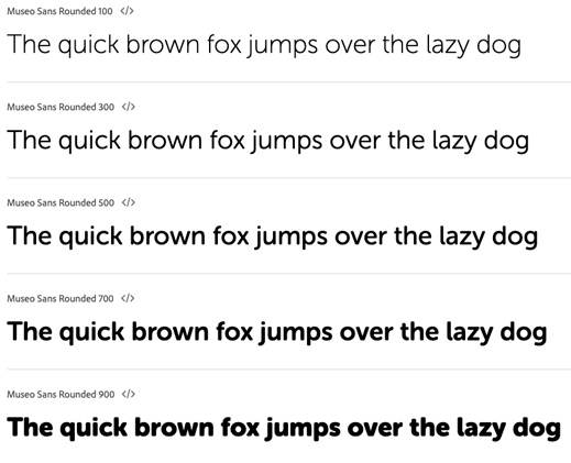 - For bold text use Museo Sans Rounded 700 or 900.